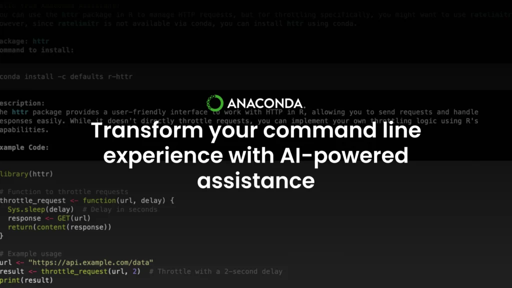 You may already be familiar with the Anaconda Assistant, the AI coding assistant from Anaconda Toolbox, available on https://nb.anaconda.cloud and locally using Anaconda Navigator. Today we are pleased to bring our AI-powered assistant to all conda users with the anaconda-assistant-conda plugin. This private beta release of Anaconda Assistant for conda summarizes the error message with […]