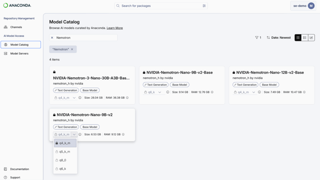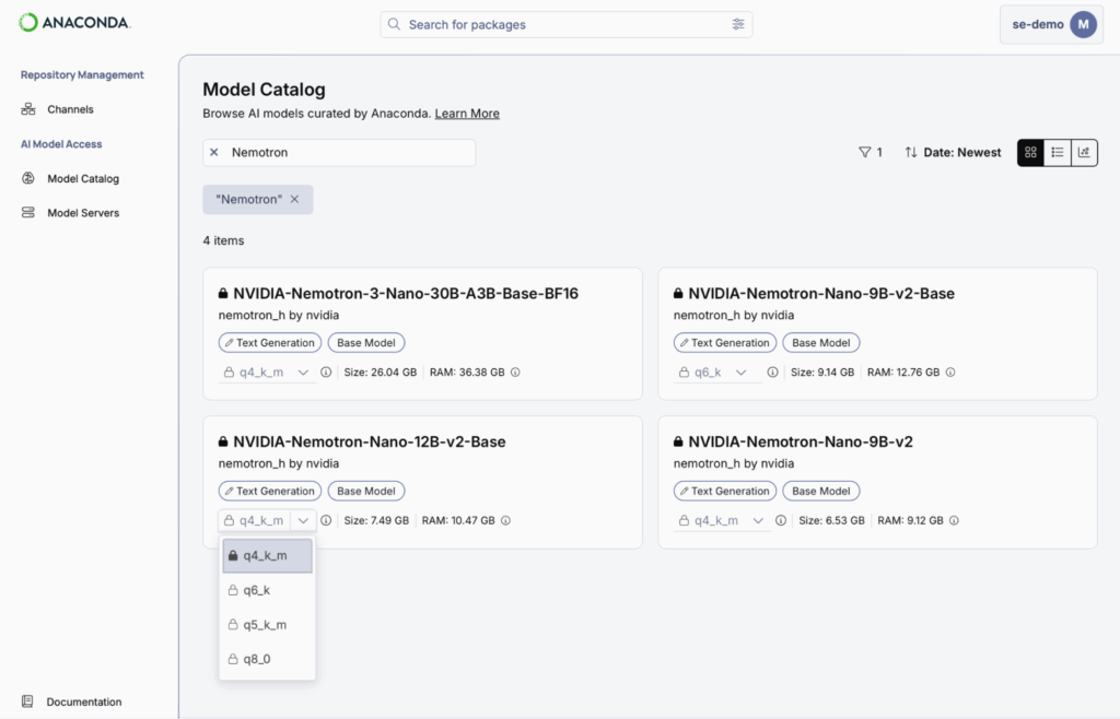 AI Catalyst now includes NVIDIA’s Nemotron foundation models with the same vulnerability scanning, compliance documentation, and reproducibility controls you already have for Python packages, eliminating governance gaps and workflow context-switching. Learn more about Anaconda’s NVIDIA partnership.