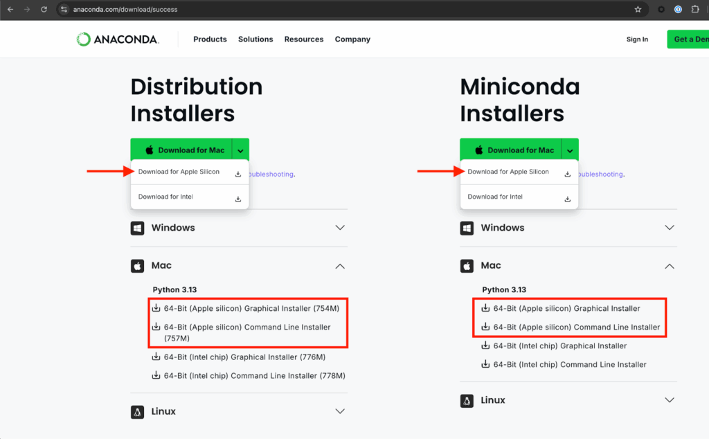 osx-64installation of Anaconda Distribution or Miniconda in emulation mode on an Apple Silicon machine, uninstall your currentosx-64installation of Anaconda Distribution or Miniconda. - On an Apple Silicon machine, download and install Anaconda Distribution or Miniconda for Apple Silicon (