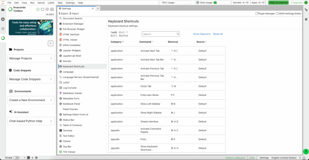 9. Anaconda Assistant (Cmd+Shift+A)