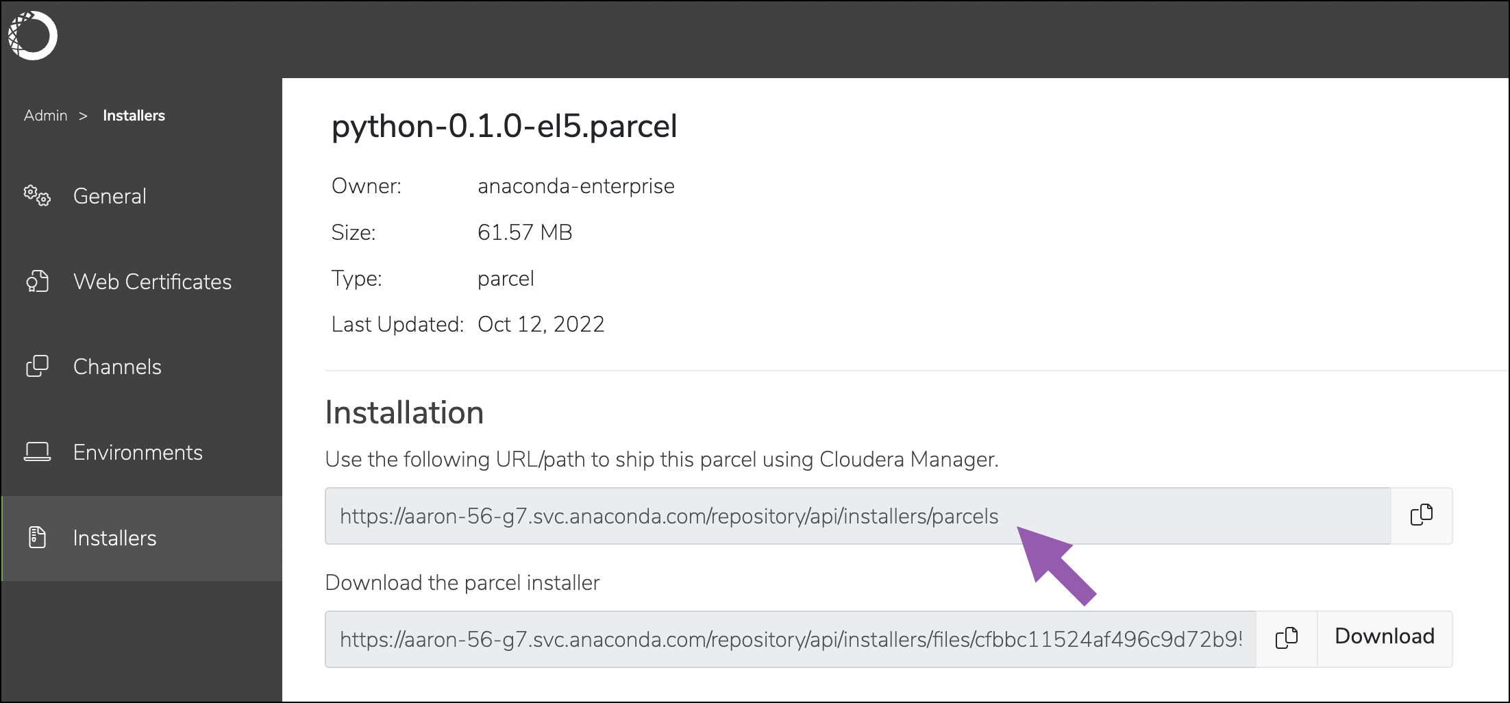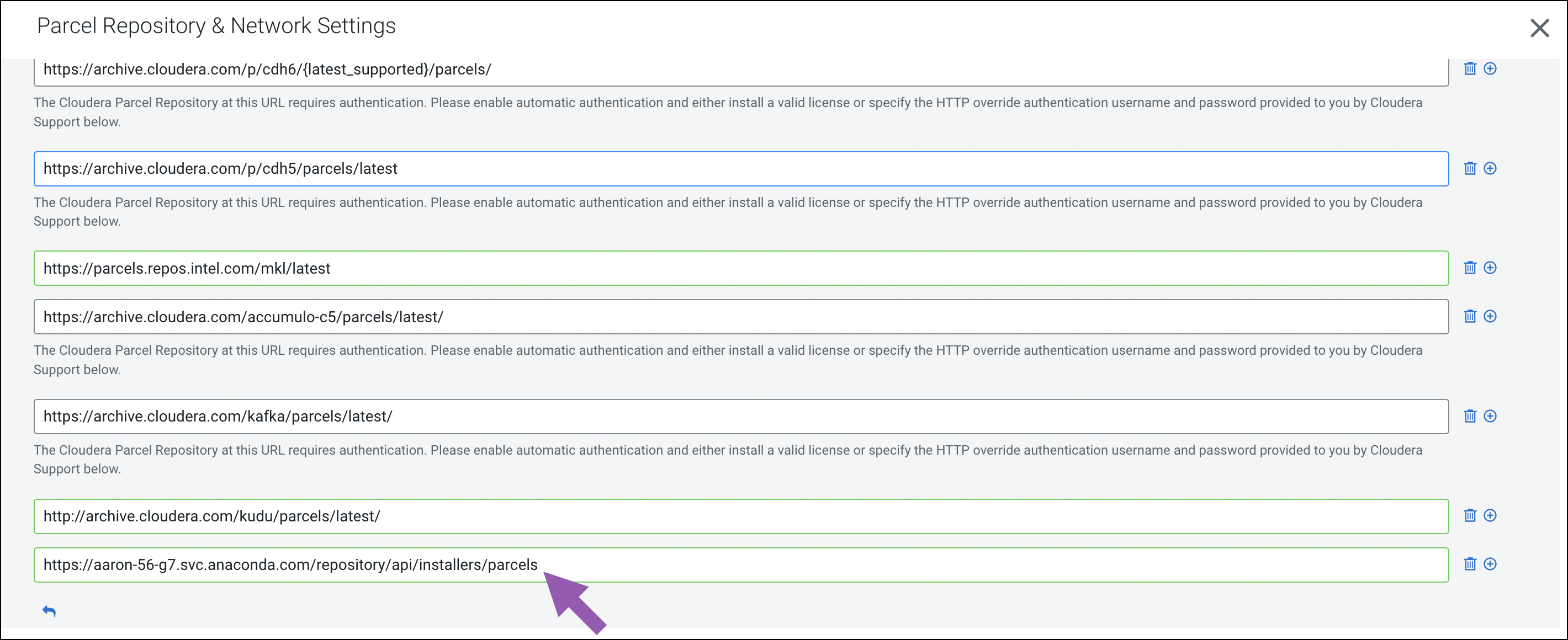 - Add the URL to the CDP parcel configuration.