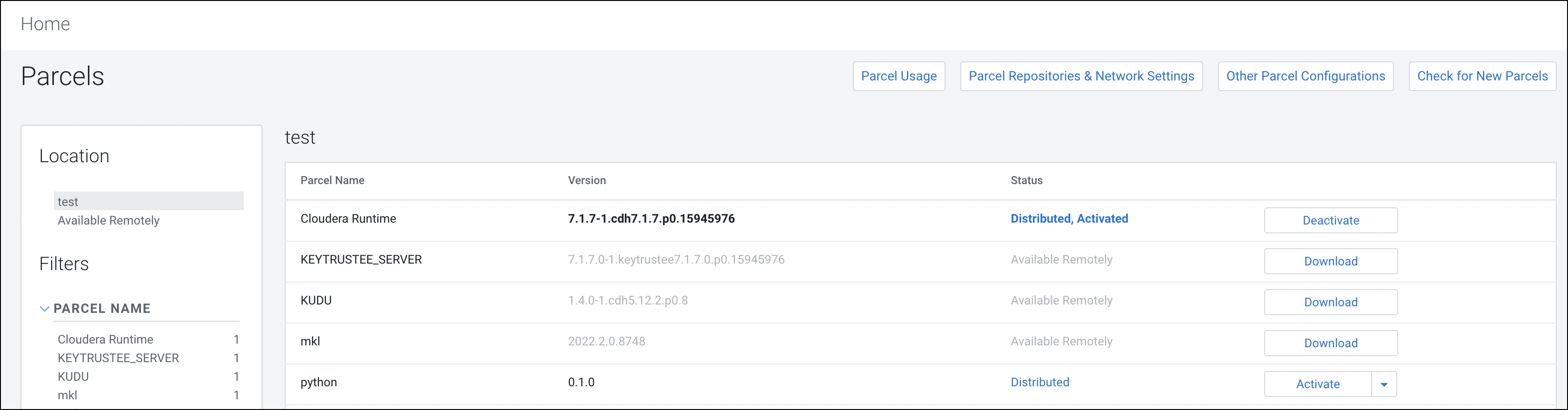 Working with Cloudera Data Platform (CDP) parcels