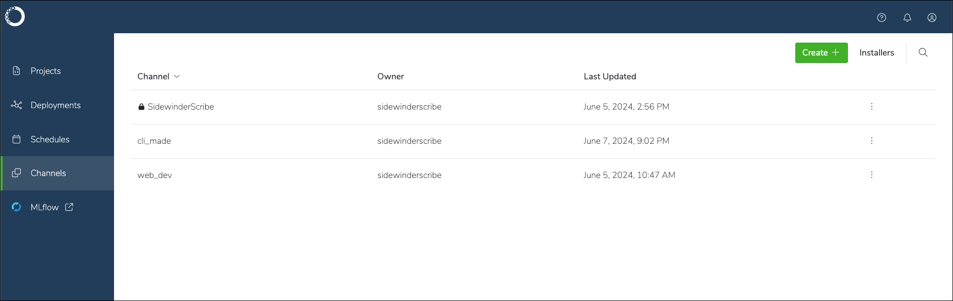 To install a package from an internal Workbench channel:- From the channels page, click on a channel name to view its packages.