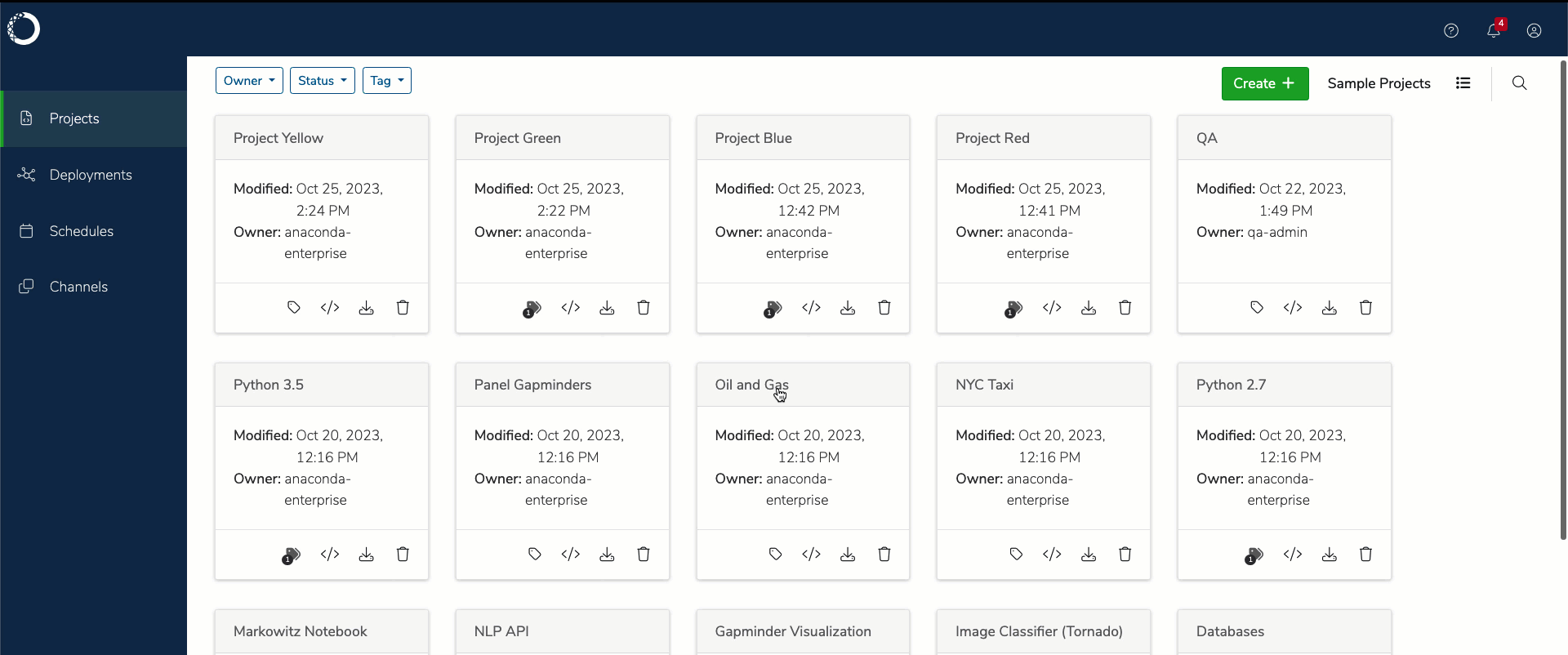 To manage project tags:- From the projects page, click the Tag icon of any project to view its tags.