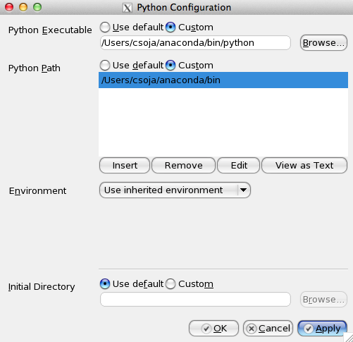 - Click the Browse button and navigate to your Anaconda Python interpreter path.