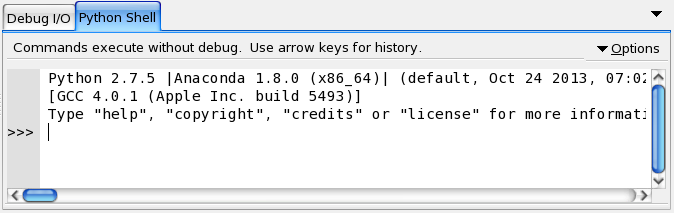 If you are prompted to reload your Python shell, do so. After the reload, Anaconda is displayed on the Python Shell tab: