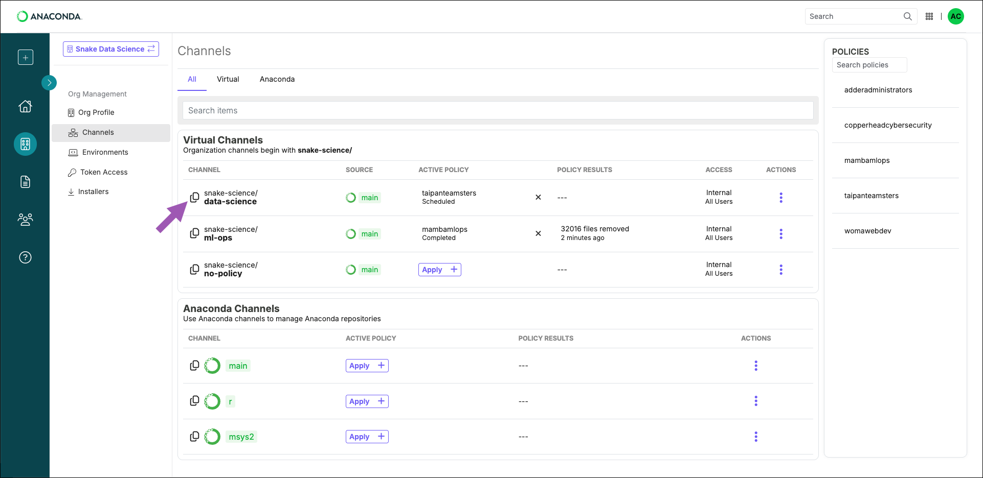 Adding an organization channel to your .condarc file