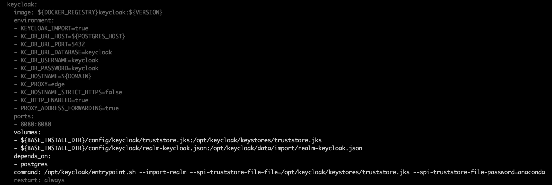 services: keycloak: depends_on:section of the file and add the following line:Here is an example of what yourdocker-compose.ymlfile should look like when you are finished adding these lines: