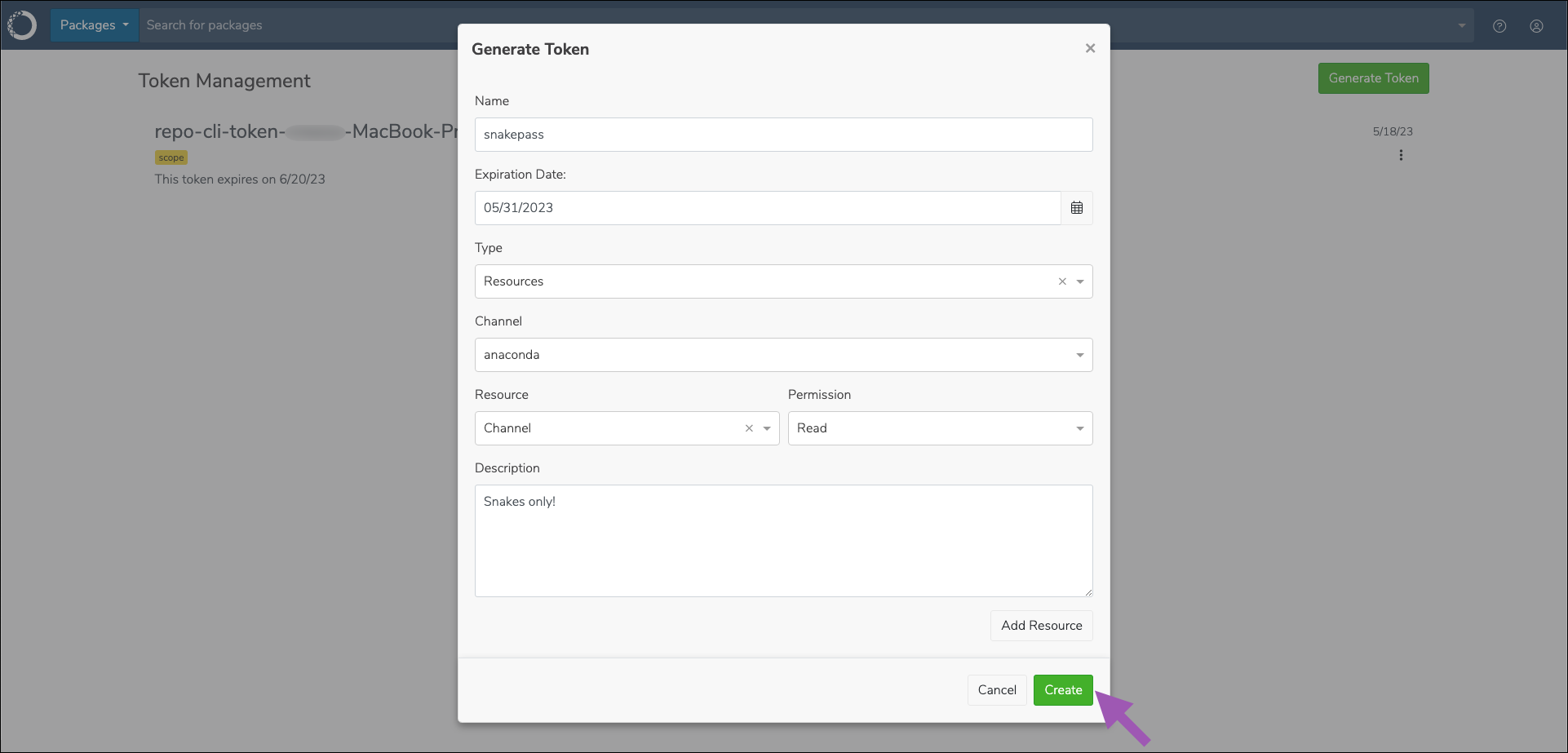 Once you have generated a token, you can share it with other users by any method you wish. If you have received a resource token from another user and you would like to use it to access packages on a channel, add the channel to your.condarc