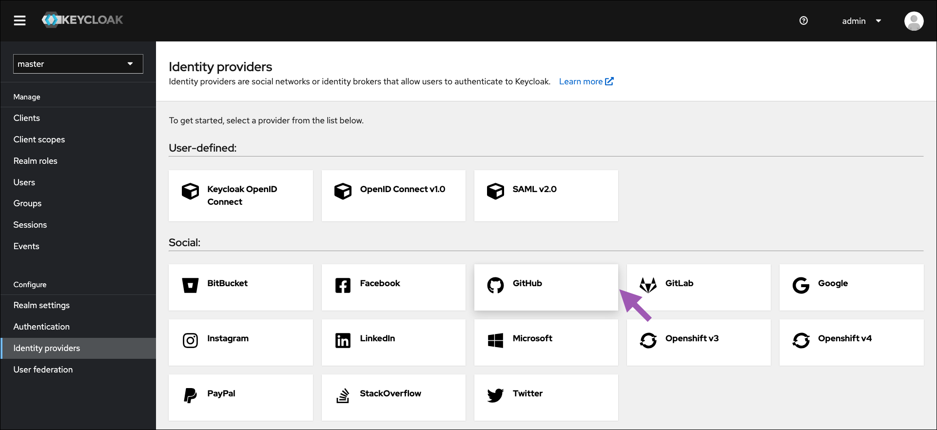 To enable users to log in using their GitHub credentials, complete the following steps: