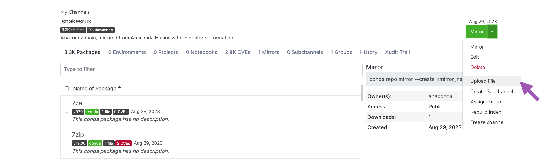 If you want to manage your packages using the CLI, see Anaconda Server CLI.Managing packages with the API