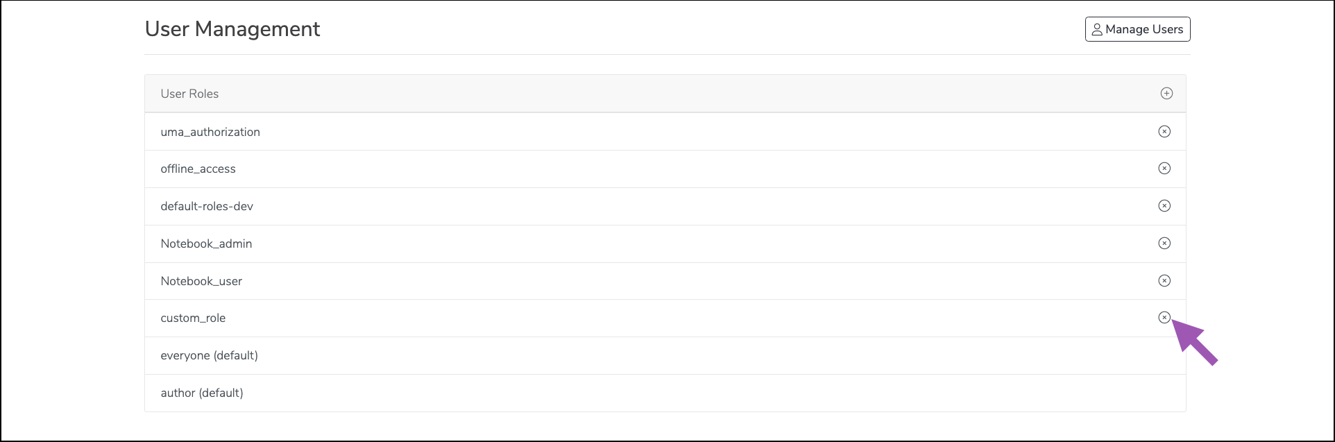 To delete a role, complete the following steps:- Log in to Anaconda Server.