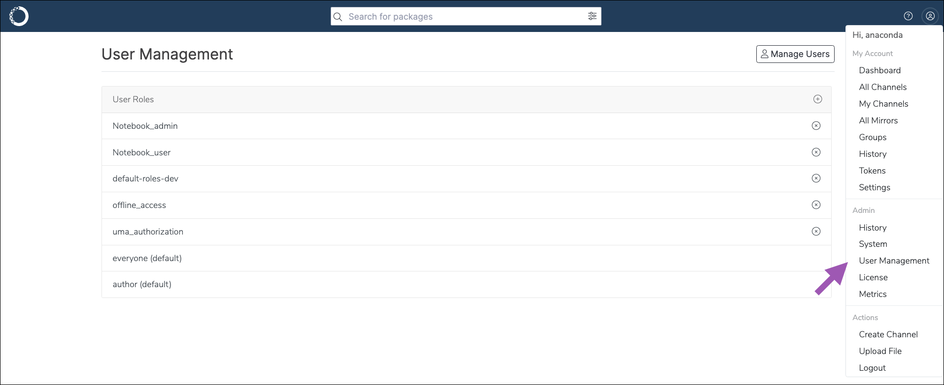 To access the administrative console in Anaconda Server UI, complete the following steps: