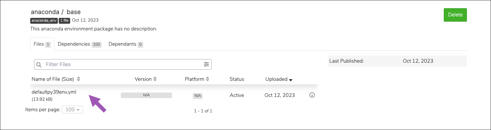 .ymlfile to view its metadata.You will be presented with the environment’s metadata.