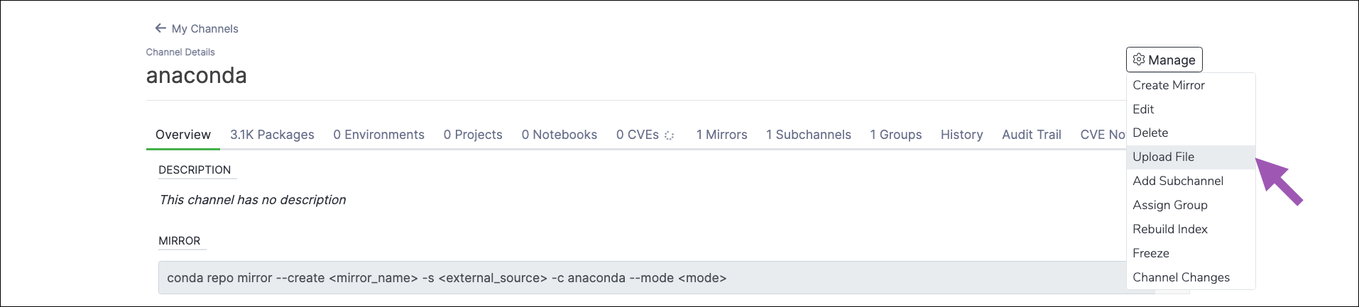If you want to manage your packages using the CLI, see Anaconda Server CLI.Managing packages with the API