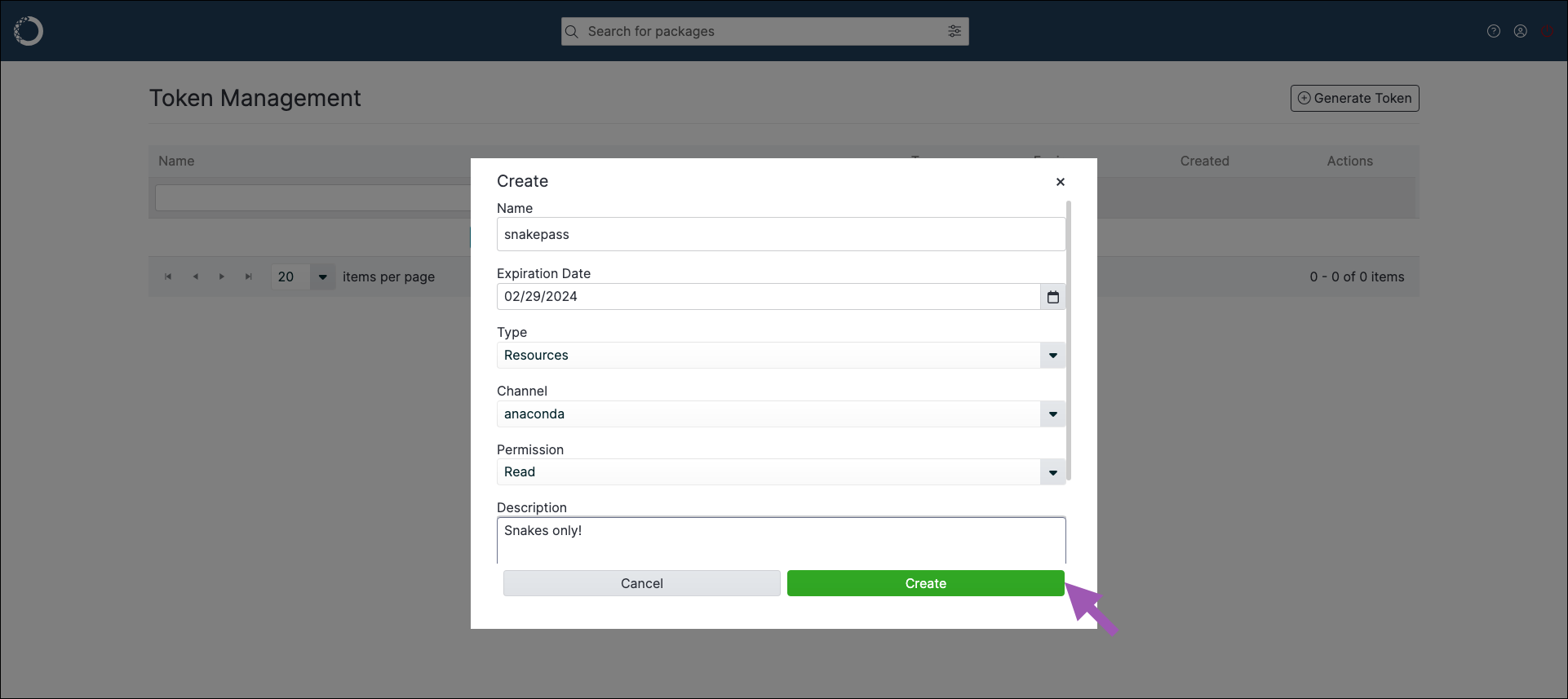 - Enter a name for your token.