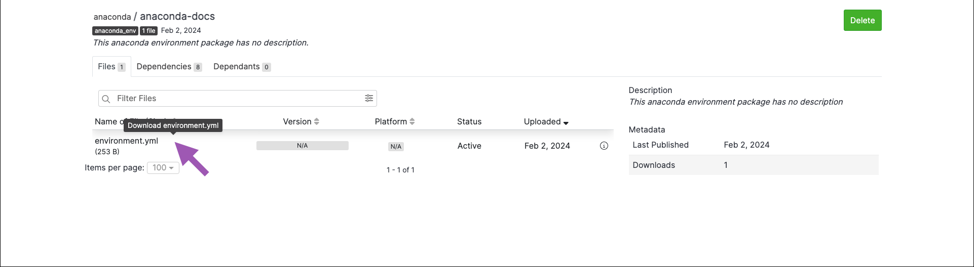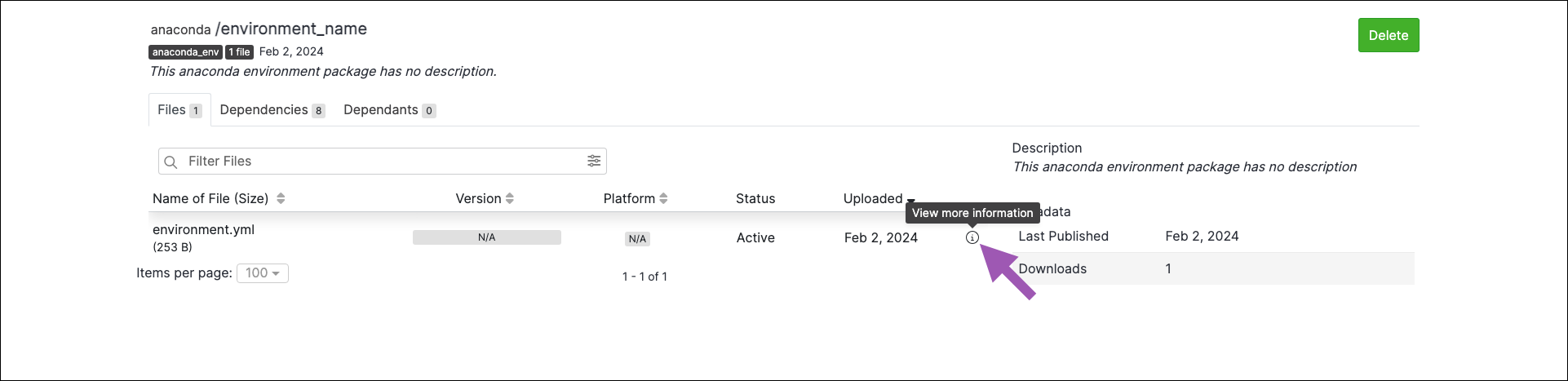 .ymlfile to view its metadata.You will be presented with the environment’s metadata.