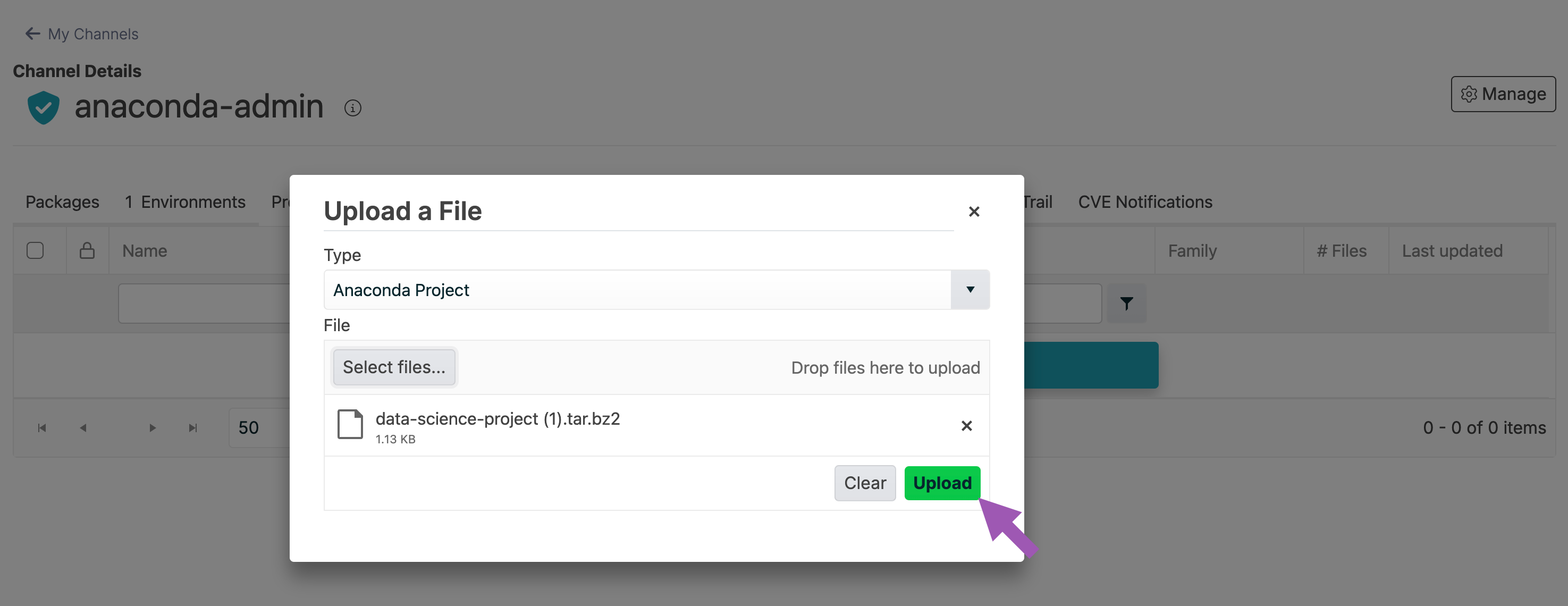 Package Security Manager enables you to upload and share Anaconda Project files within a channel. You can move, copy, and share your project with your team or provide authorized users access to the channel.