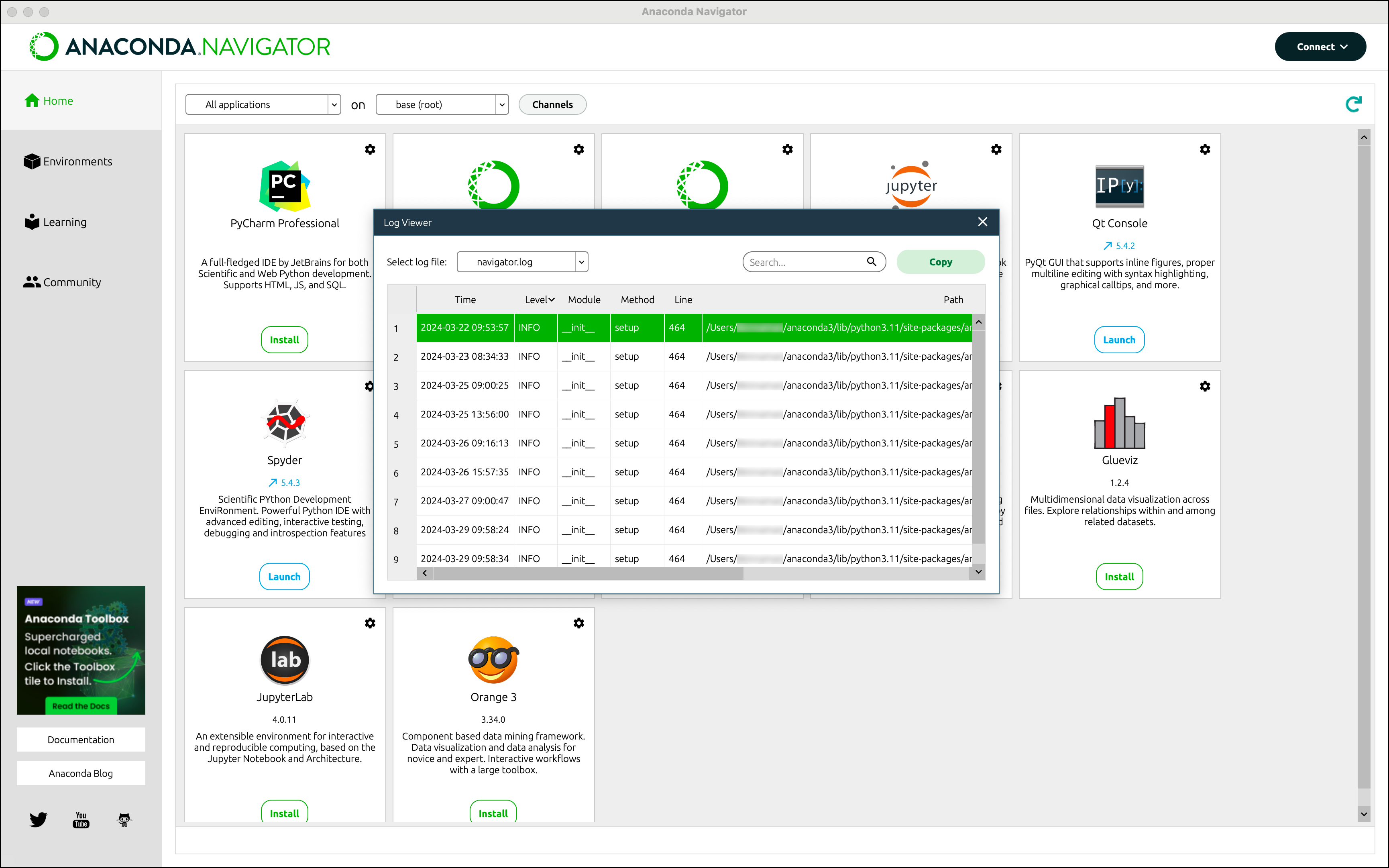 navigator.log file, available in the following paths, depending on your operating system: