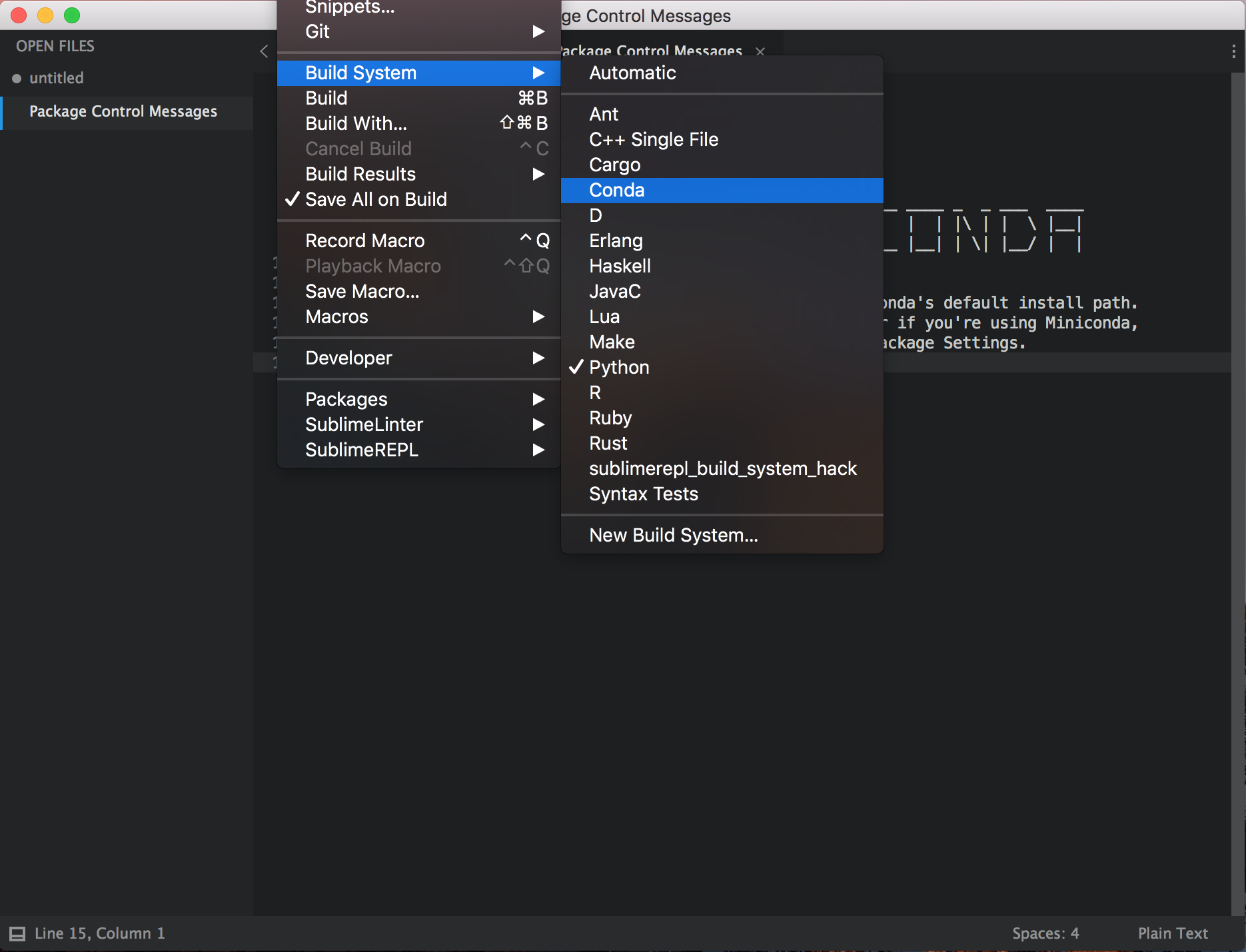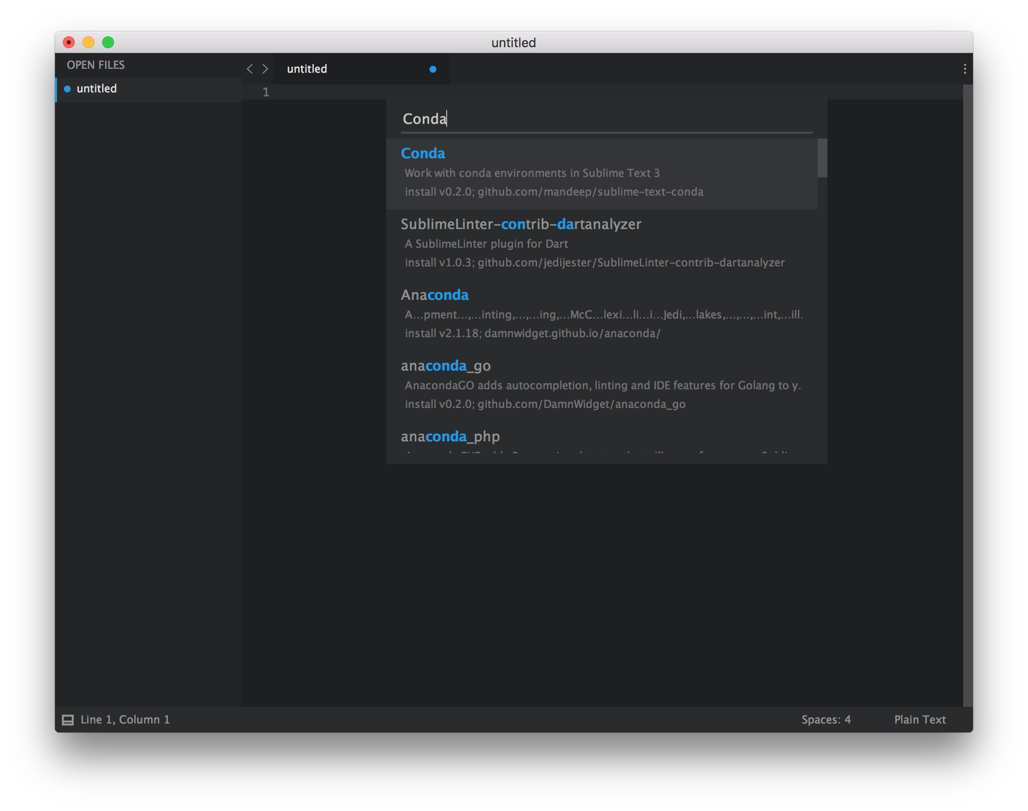 - All Package Control commands begin with “Package Control:”. Start by typing “Package”.