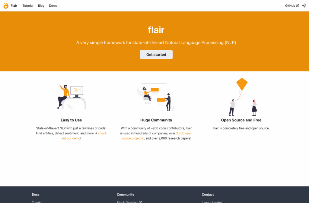 Who uses it: Data scientists and NLP researchers who need high-accuracy sequence labeling (particularly for NER) and want the flexibility to combine multiple embedding strategies without writing custom integration code. Flair is especially well-suited to domain-specific applications like biomedical text analysis, where its HunFlair models offer specialized out-of-the-box support that general-purpose libraries don’t provide.