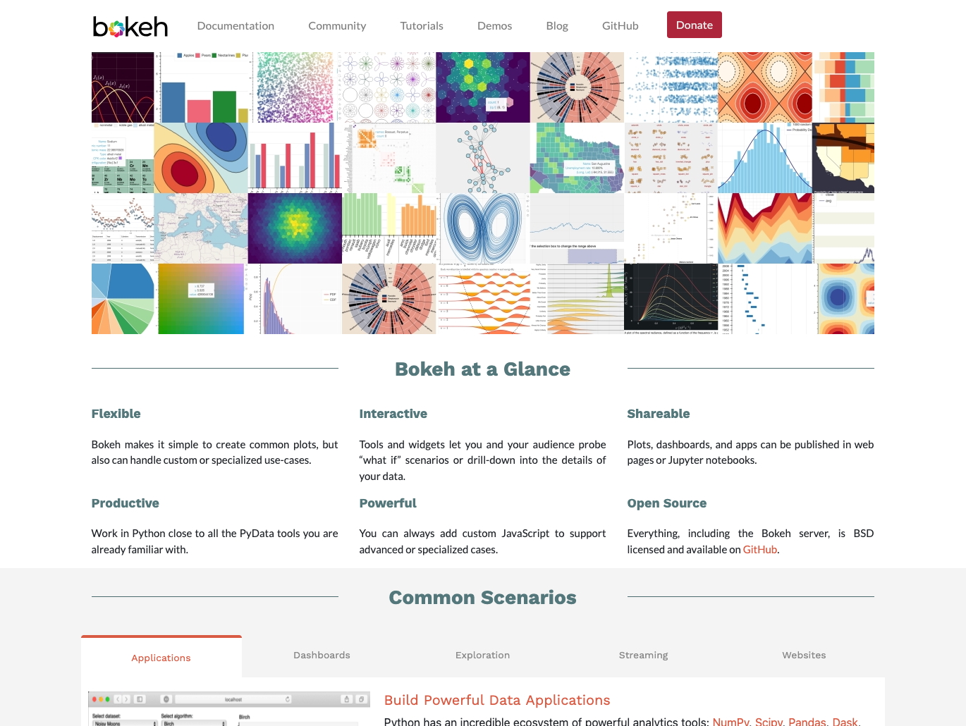 Bokeh lets you create interactive plots, dashboards, and data applications that run in web browsers without requiring JavaScript knowledge.