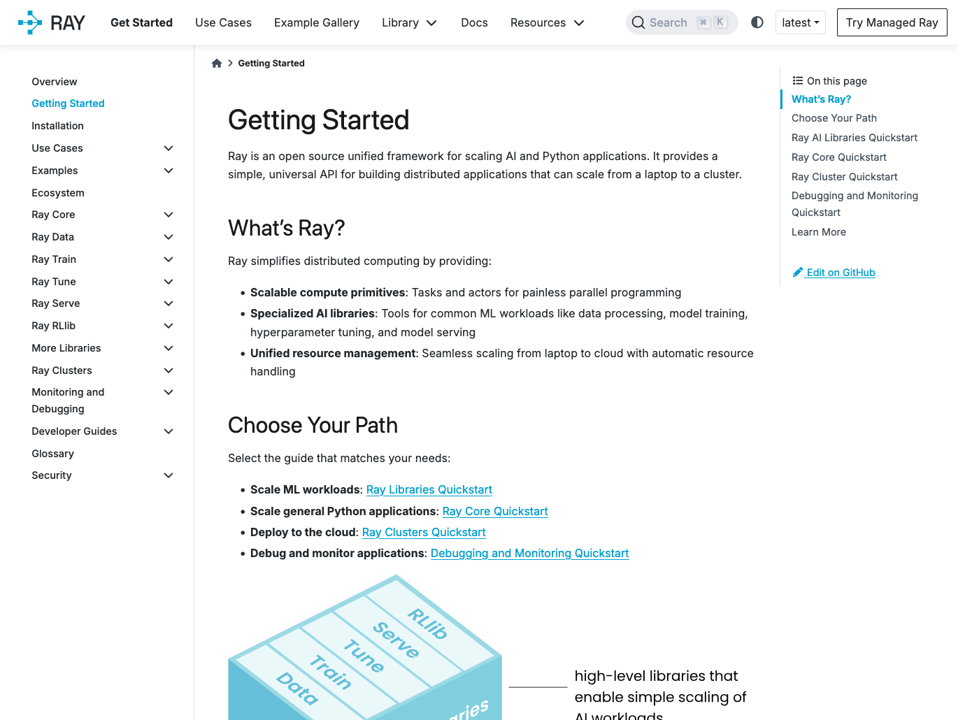 Ray is a distributed computing framework for scaling Python applications from laptops to clusters.